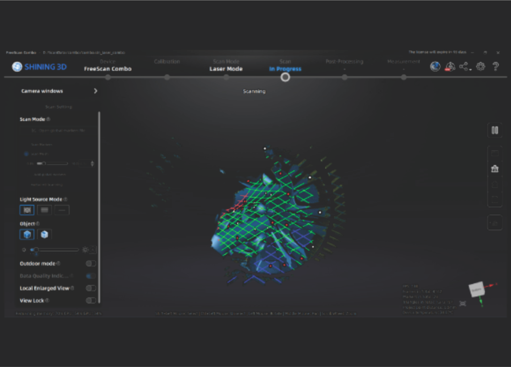 Los escáneres y sistemas de seguimiento de la serie FreeScan incorporan la fotogrametría de vídeo (VPG) patentada por SHINING 3D, que elimina la necesidad de marcadores codificados. Esto garantiza una precisión volumétrica constante y agiliza el proceso de configuración para una exploración eficiente de objetos de gran tamaño