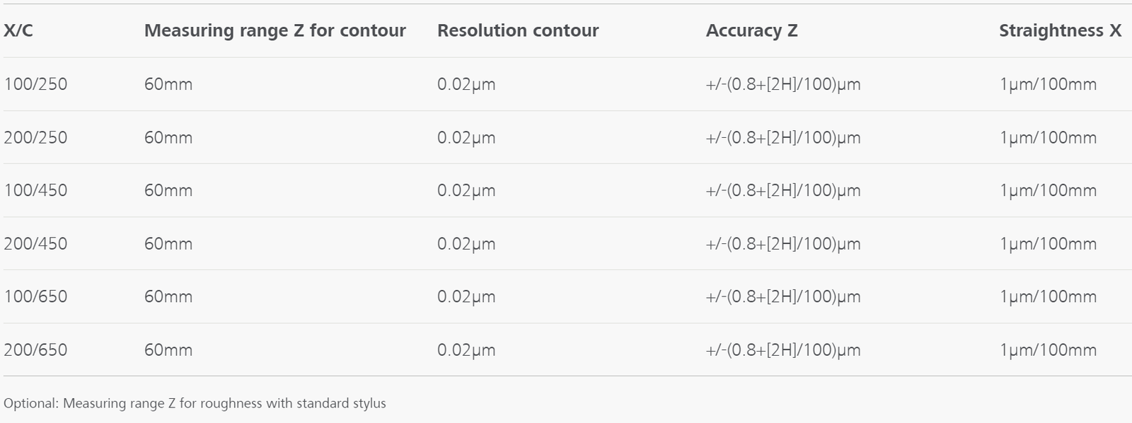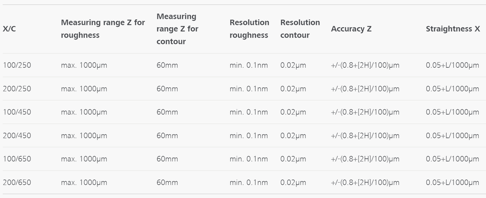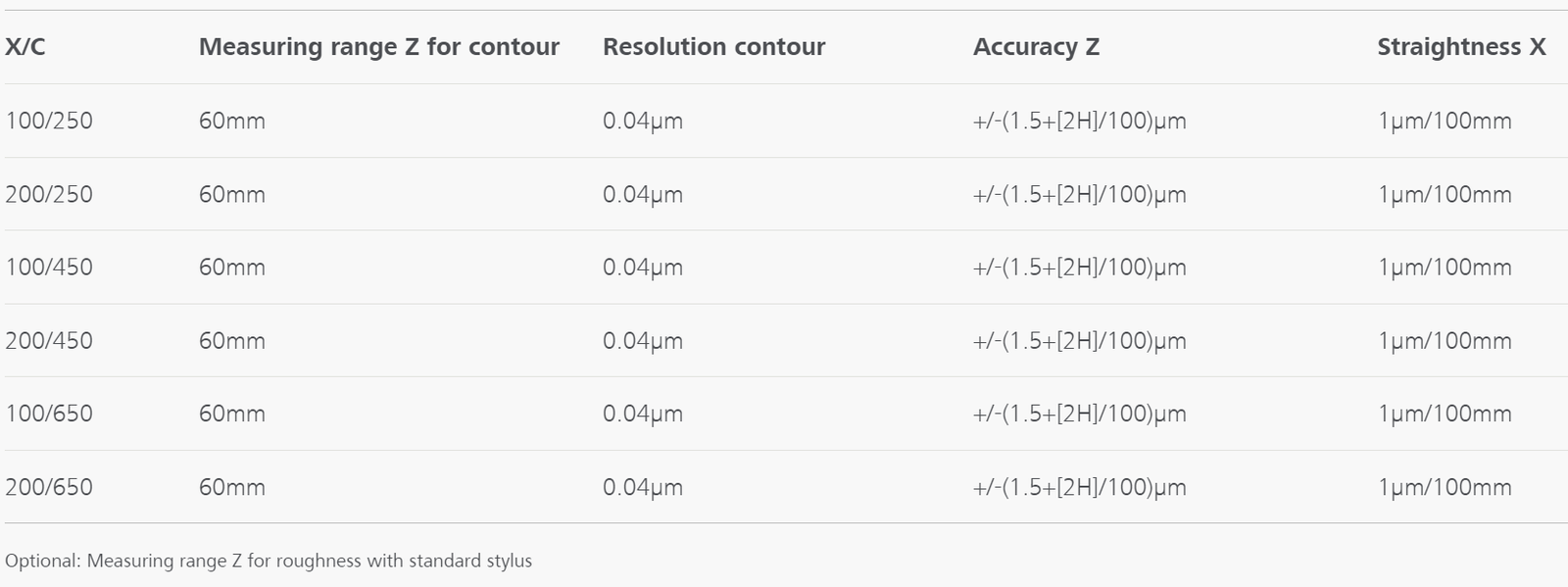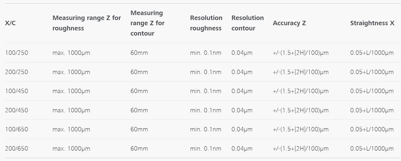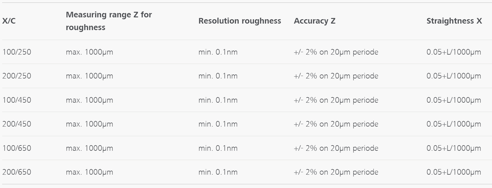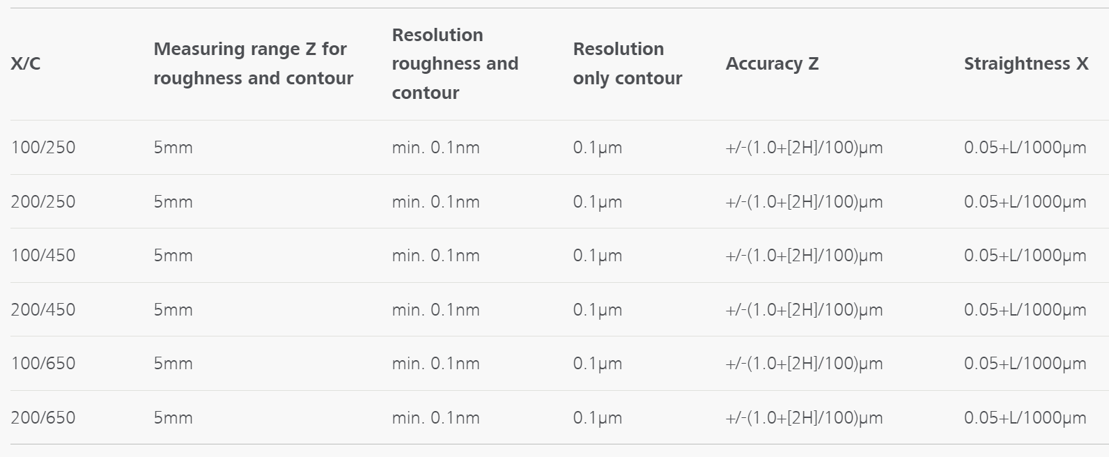 - Bajo error de medición en la dirección X: ± (0,2+L/1.000) µm; ± 0,4 µm a L=200 mm